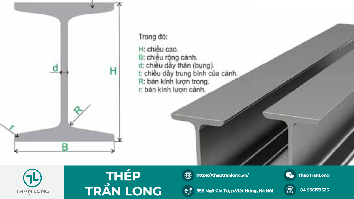Dưới đây là bảng quy cách kỹ thuật của sản phẩm thép hình I 400 x 150 x 10 x 18 Thép Trần Long, cập nhật chuẩn 2025: