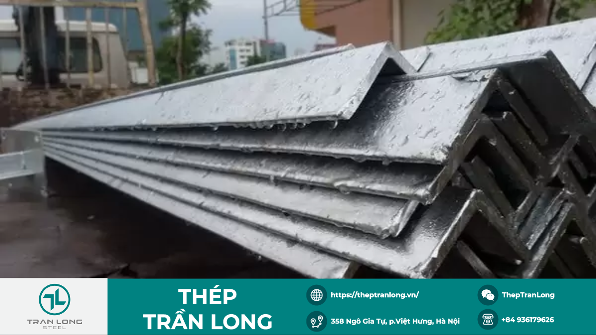 Ứng dụng phổ biến: Làm lan can cầu thang, khung cửa sắt, kết cấu trang trí ngoài trời, hoặc hệ thống điện dân dụng (thang cáp, đỡ ống). - Thép hình V 110 x 110 x 10 mạ kẽm nhúng nóng: